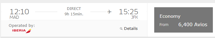 • Iberia Economy Class von Madrid nach New York für 6.400 Avios