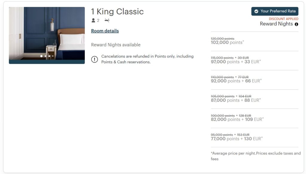 - Gilt für Aufenthalte, die vollständig mit Punkten gebucht werden und für Cash & Points-Raten