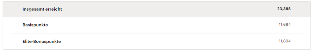 Elite-Bonuspunkte: Elite-Bonuspunkte erhaltet Ihr als Zuschlag zu euren Basis-Punkten, wenn Ihr den entsprechenden Status besitzt. Mit dem höchsten Status „Diamond“ bekommt Ihr zum Beispiel einen 100% Bonus auf die Basispunkte. Also 20 Punkte, statt nur 10 pro anrechnungsfähigem USD. Aber Achtung: Elite-Bonuspunkte zählen nicht als Status-Punkte.