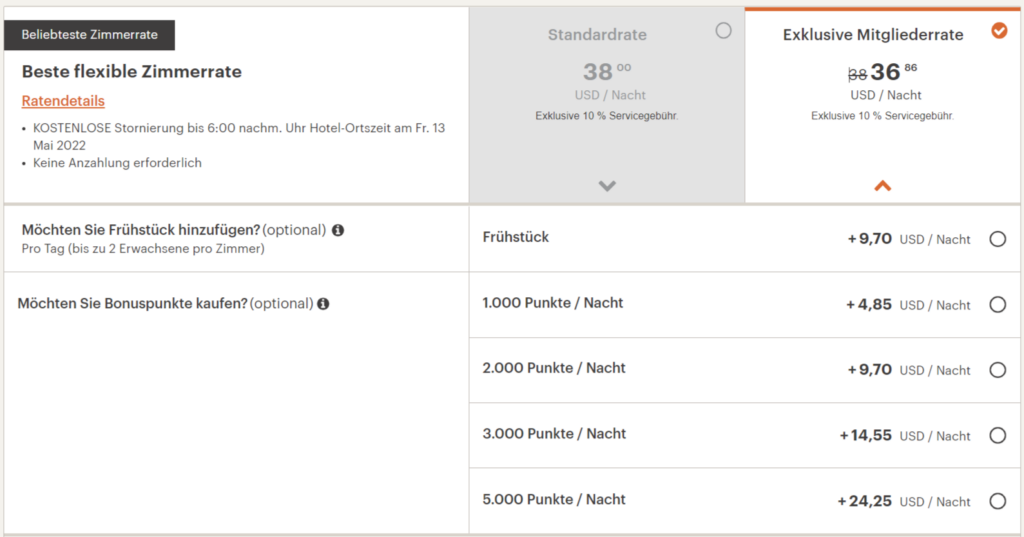 - Begrüßungsgeschenk zur Wahl: Punkte, Snacks/Drinks oder kostenloses Frühstück für den Euch und eine Begleitperson