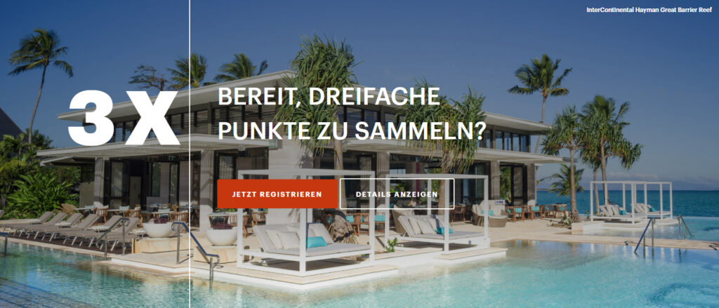 Übrigens könnt Ihr die dreifachen Punkte auch mit der aktuellen Aktion mit kostenlosen Nächten in IHG Luxus Hotels bei Frankfurtflyer Hotels kombinieren! So profitiert man gleich mehrfach.