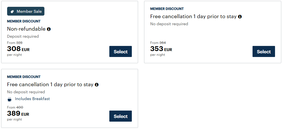 - Vergewissert Euch, dass die Rate „Member Sale“ verfügbar ist und bucht Eure Zimmer mit dieser Rate.