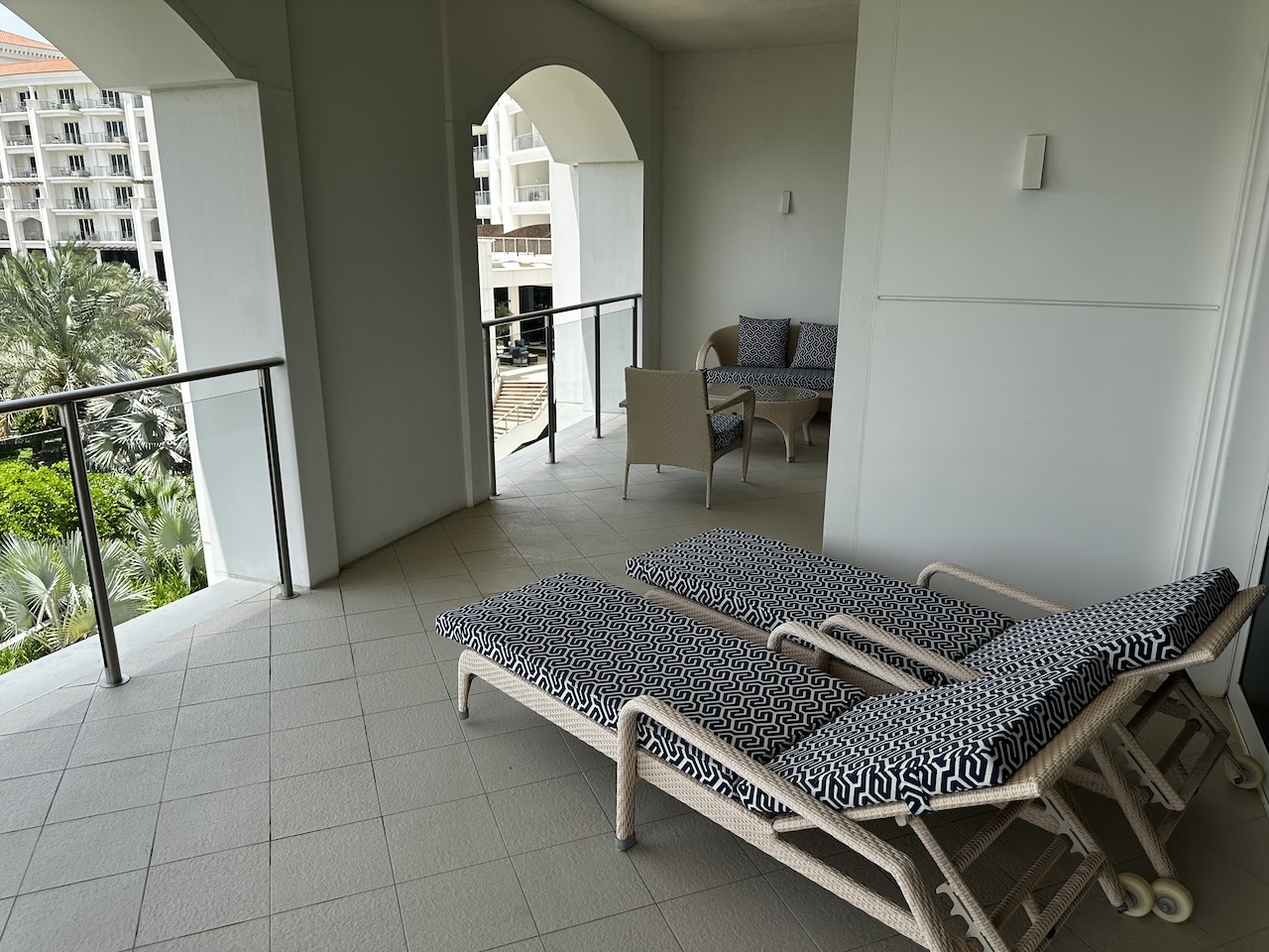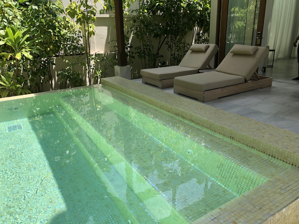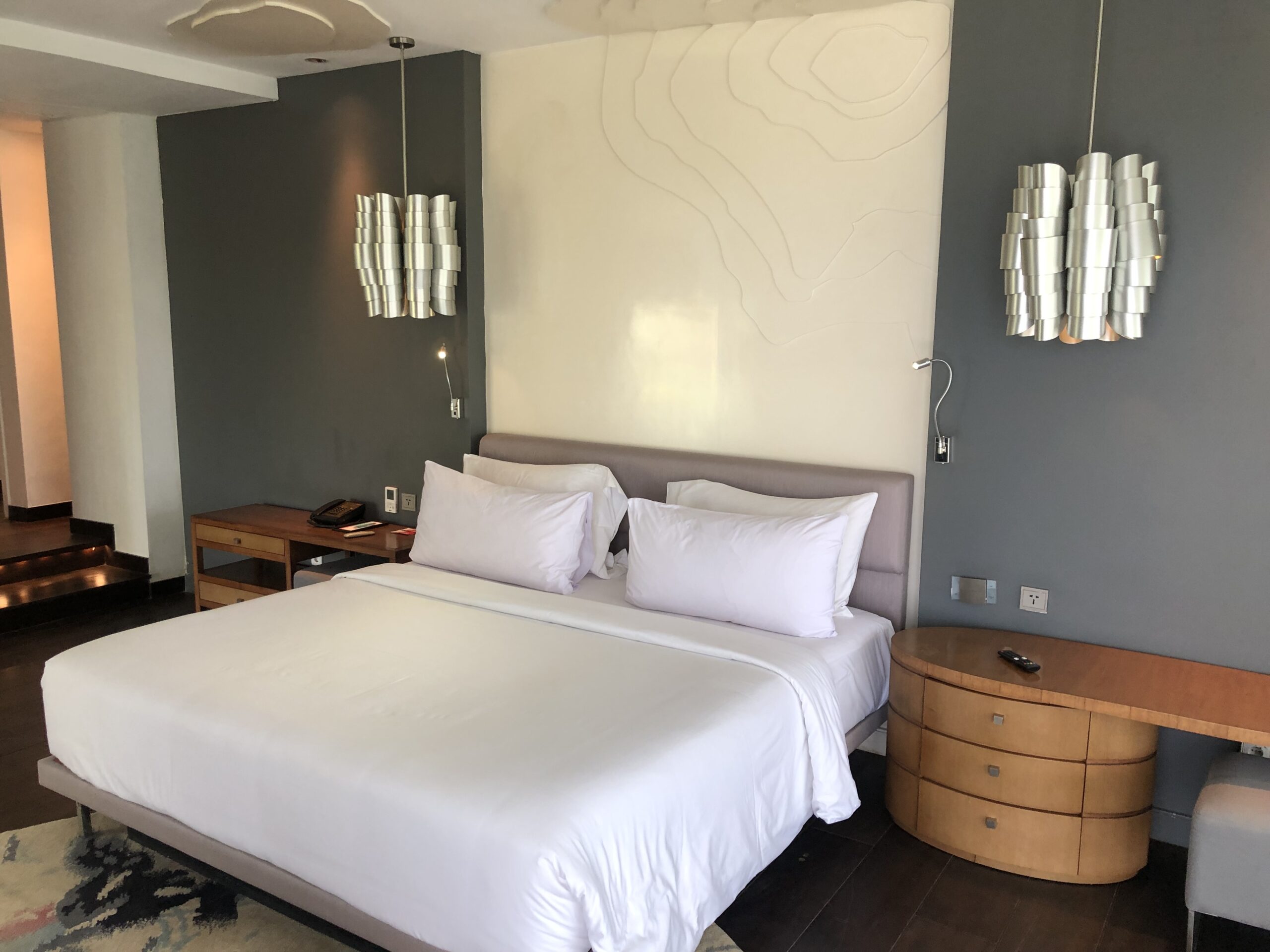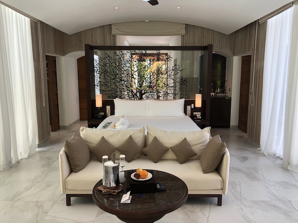Das Hotel gehört zu Marriott, hier habe ich einen Tag vor der Ankunft meine Upgrade Awards eingelöst und eine eigene Villa erhalten. Diese war jedoch ziemlich abgewohnt, im Bad und am Pool gab es einige Defekte. Für die letzte Nacht hat uns das Hotel die Präsidenten Suite zur Verfügung gestellt.