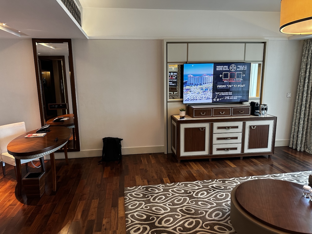 Das Luxushotel hat mehrere Zimmerkategorien, hier hätte ich alleine durch meinen Honors Status auf ein Upgrade spekulieren dürfen. Die Rezeptionistin hat den Status und die Impresario-Buchung berücksichtigt und das gebuchte Twin Superior Zimmer auf eine „King Deluxe One Bedroom Suite with Sea View“ upgegraded.