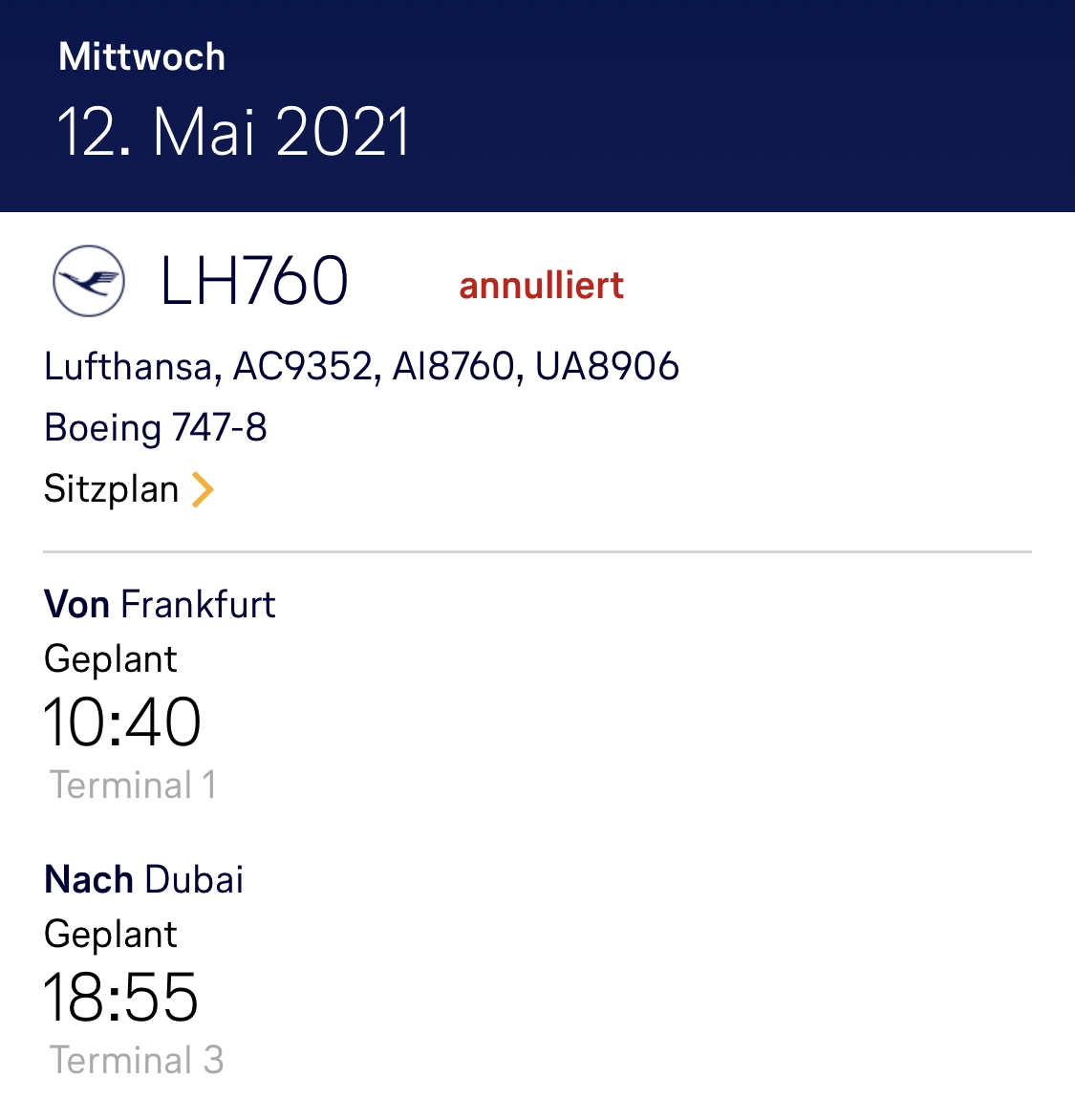 An einzelnen Verkehrstagen sind daher bis zu drei Boeing 747-8 fast zeitgleich von Frankfurt nach Dubai geflogen. Dort wechselte die Besatzung, während die Passagiere an Bord bleiben mussten. Nachdem die neuen Crews übernommen haben und die Jets aufgetankt wurden, ging es weiter in Richtung Indien. Dort wurden die Jumbos „umgedreht“ und haben mit neuen Passagieren die Rückreise angetreten.