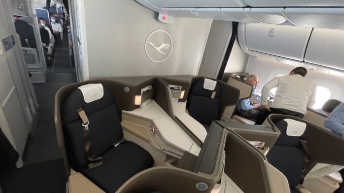 Die Sitze bieten deutlich mehr persönlichen Freiraum als die aktuelle Lufthansa Business Class, sowie mehr Privatsphäre und durch die 1-2-1 Anordnung auch direkten Gangzugang.