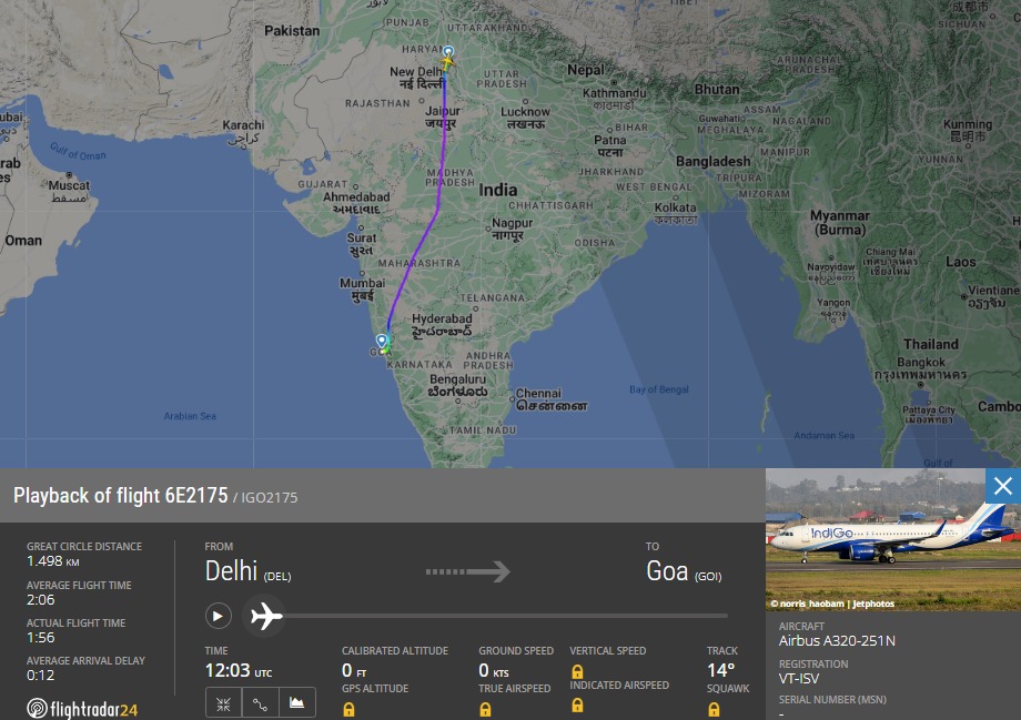 Mit etwas mehr als zwölf Stunden Verspätung landete der Airbus A320neo mit der Registrierung VT-ISV dann um 19:55 Uhr in Goa.