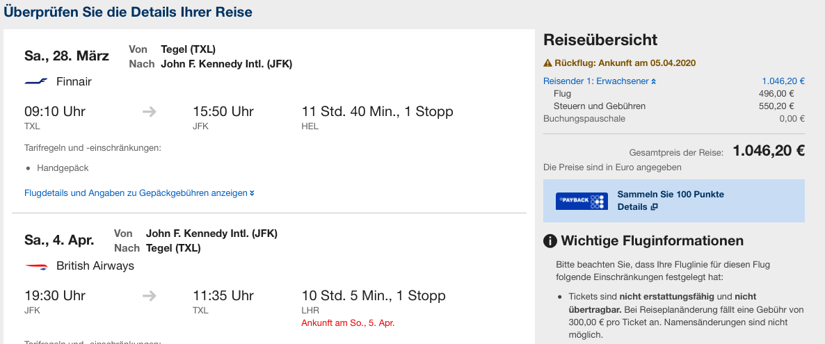 Buchungsbeispiel New York