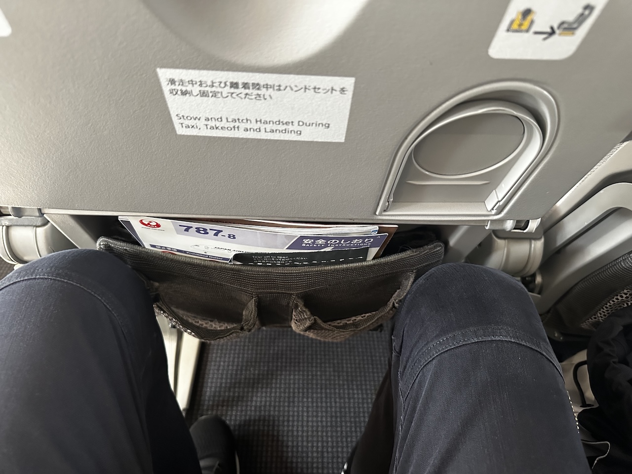 Der Dreamliner hatte auch einen Internetrouter, ich habe mich aber auf dem kurzen Flug nicht damit verbunden. In der Sitztasche waren das Bordmagazin und weitere Infos zu JAL.