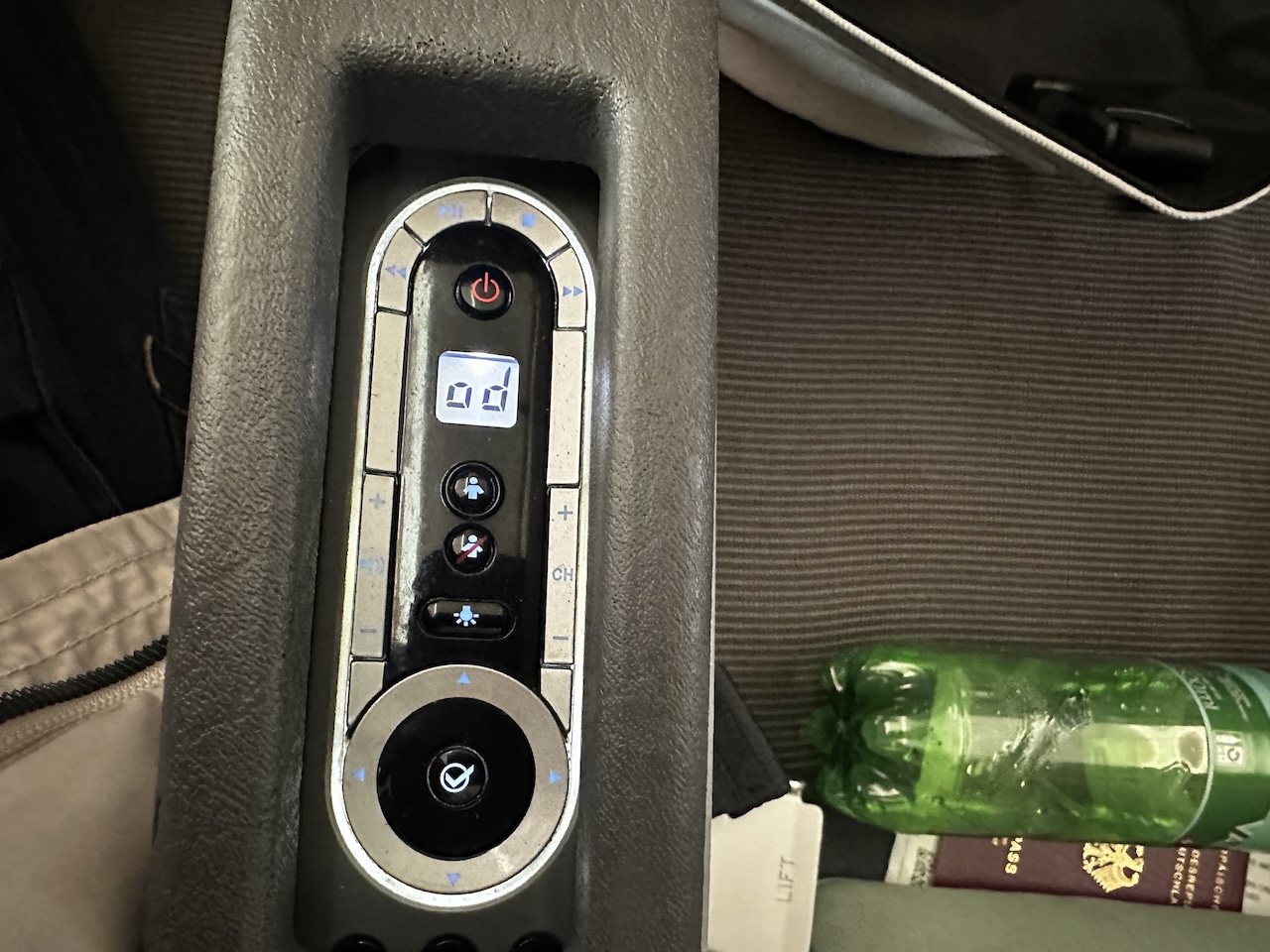 Die Crew hat uns freundlich empfangen, auf dem Weg zum Sitzplatz konnte ich noch ein Foto von dem Sitz in der „Class J“ machen:
