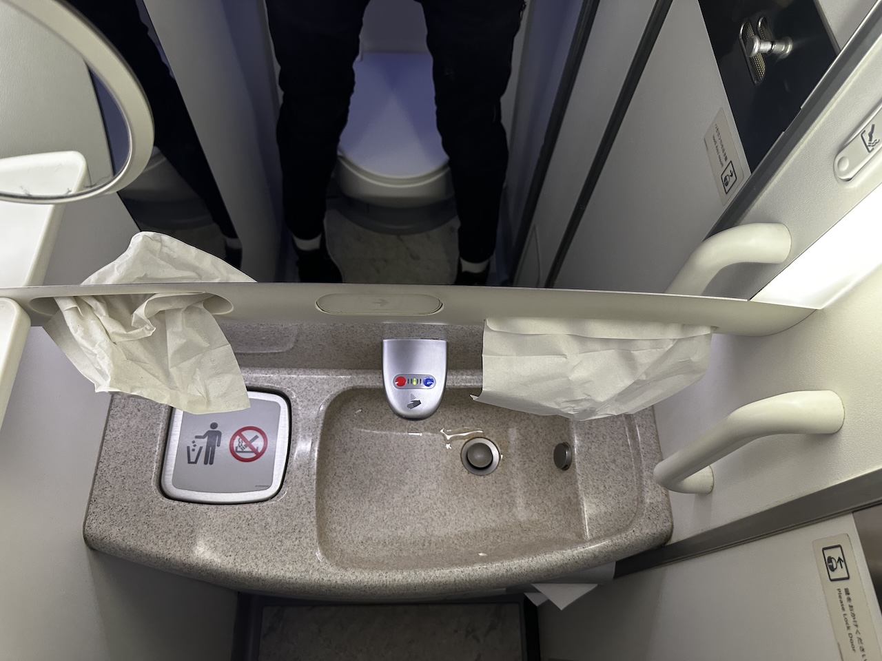 Wir hatten nicht allzu viel Zeit und vor Abflug im Hilton Narita Airport gefrühstückt, daher haben wir die Lounge ausgelassen. Das Gate war zudem gut 10 Minuten von der Einrichtung entfernt. Dort angekommen wurde uns dann mitgeteilt, dass sich der Einsteigevorgang um 15 Minuten verzögern wird.