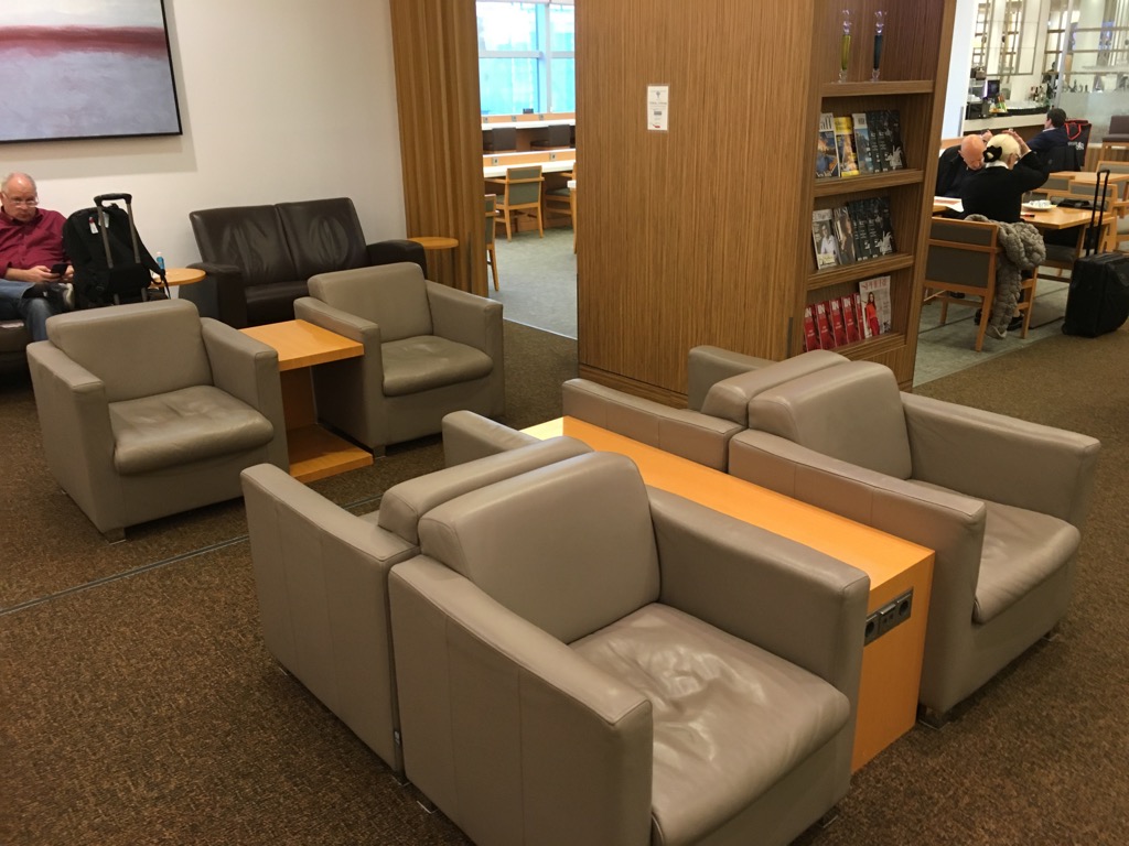 Der eigentliche Loungebereich befindet sich im hinteren Teil der JAL Sakura Lounge in Frankfurt. Hier findet man einige großzügig gestellte Sessel in mehreren Sitzgruppen.