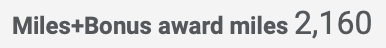 Die Meilengutschrift steigt nochmal deutlich, der Inlandsflug bringt dann satte 2.160 Meilen. Mit der Verdoppelung der Statusmeilen sind es bereits 4.320 von 9.000 Meilen!