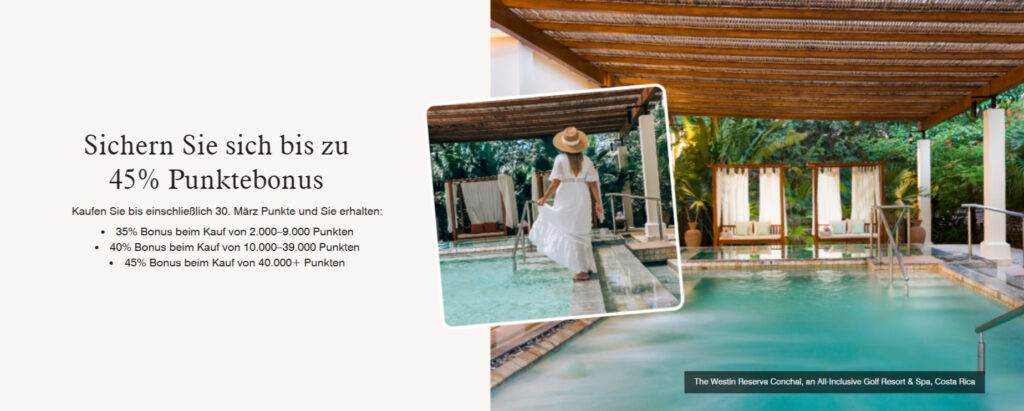 Die Aktion, bei der Ihr Punkte mit bis zu 45% Bonus über die Plattform points.com kaufen könnt, läuft mal wieder sehr lang. Bis zum 30. März 2025 könnt Ihr Euer Punktekonto gegen Geld aufladen. Im Maximum mit bis zu 150.000 Punkten plus Bonus pro Jahr. 1.000 Punkte werden dabei mit 12,50 USD berechnet. Für die Höchstmenge von 150.000 plus 67.500 Punkten berechnet Euch der Anbieter 1.875 USD.