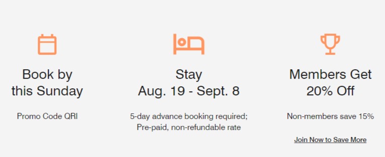 Wie üblich gilt das Marriott Bonovy Escapes-Angebot nur für Übernachtungen am Wochenende (abgesehen von Resorts) und für Buchungen in den kommenden sechs Wochen. Der Angebotstarif ist leider nicht stornierbar und muss im Voraus bezahlt werden.