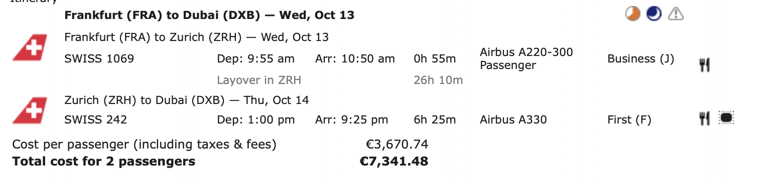 Schon aus sentimentalen Gründen stand für uns sehr schnell fest, dass wir gerne mit Swiss über Zürich nach Dubai fliegen wollen. Dies ist der einzige First Class Flug der Lufthansa Gruppe nach Dubai und wir haben ihn vor Corona mehrmals nutzen können, weshalb wir tolle Erinnerungen mit diesen Flügen verbinden.