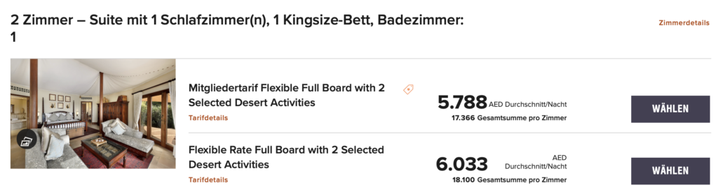 Dafür sind im Al Maha Resort auch Punktebuchungen mit Vollpension, womit Frühstück, Lunch und Dinner inklusive sind für alle Gäste.