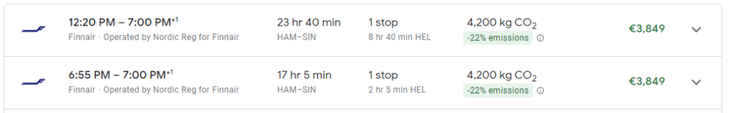 Flüge Finnair C HAM-HEL-SIN       164,52€        160.000     3.849,00€