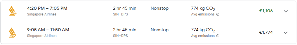 Flüge Singapore Airlines C SIN-DPS       263,00€          26.600     1.106,00€
