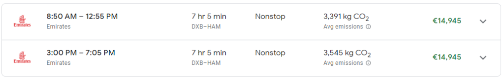 Flug Emirates DXB-HAM       195,00€        217.250   14.945,00€