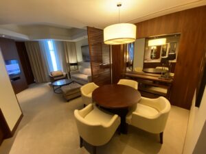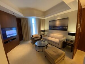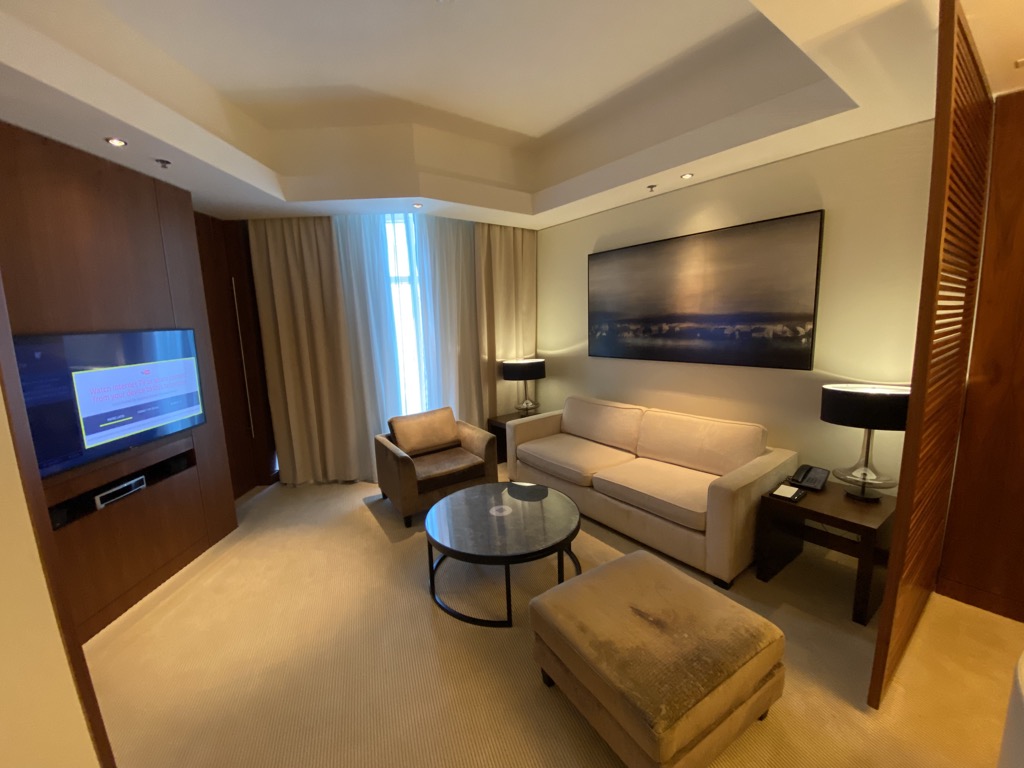 Auch wenn ich als Marriott Titanium Elite Member (was ein Name) vermutlich ohnehin eine Suite als kostenloses Upgrade erhalten hätte, haben wir drei meiner 14 vom Verfall bedrohten Suite Night Awards eingelöst und so eine Suite erhalten.