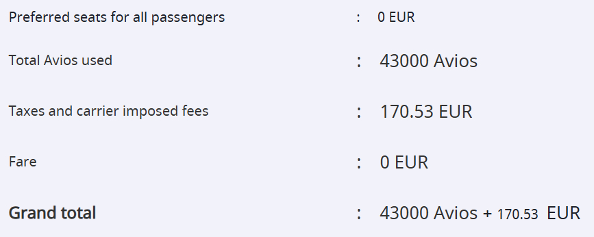 So sieht die Buchung eines Award Tickets ohne Rabatt aus: