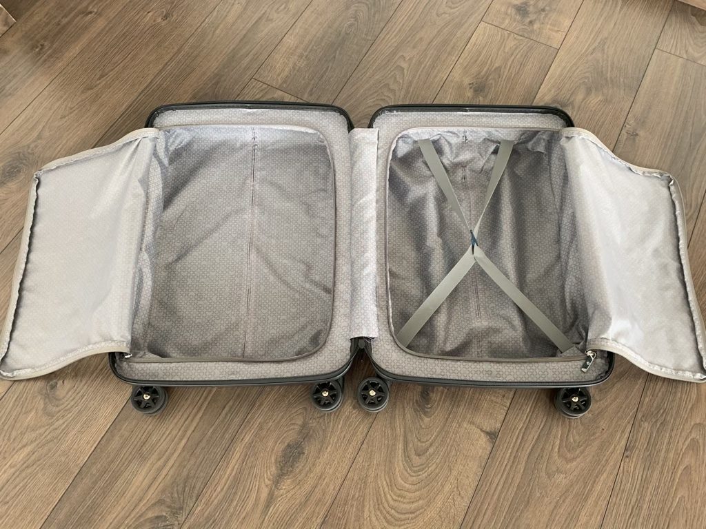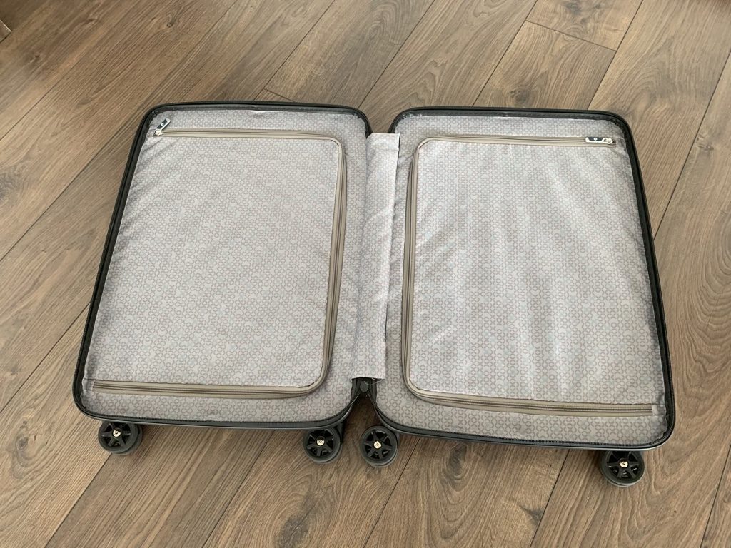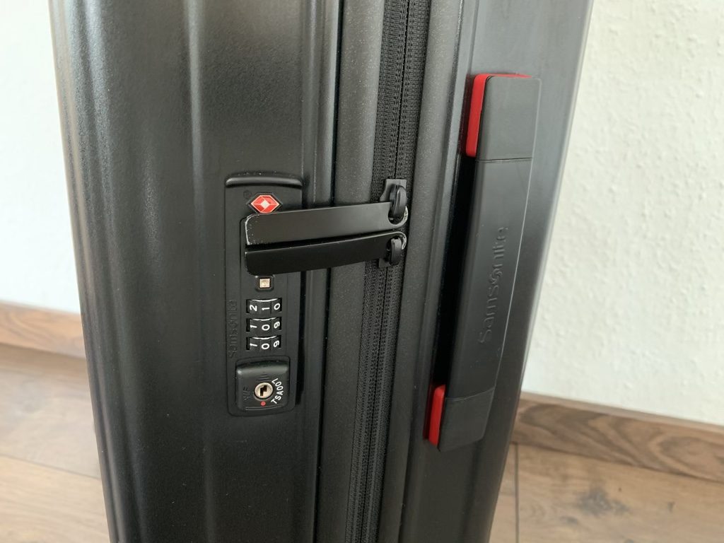 Bisher hatte ich immer Kabinentrolleys mit einem verschließbaren Fach, das andere war meist komplett offen oder nur durch einen Gummizug gesichert. Beim Samsonite Neopulse habe ich das Handgepäck immer so gepackt, dass alles bis auf den Laptop und die Flüssigkeiten in den beiden großen Fächern, verschlossen mit den Stoffdeckeln, verschwunden ist. So konnte ich an der Sicherheitskontrolle immer alle relevanten Gegenstände schnell rausholen, ohne dass andere Dinge „rausgefallen“ sind.