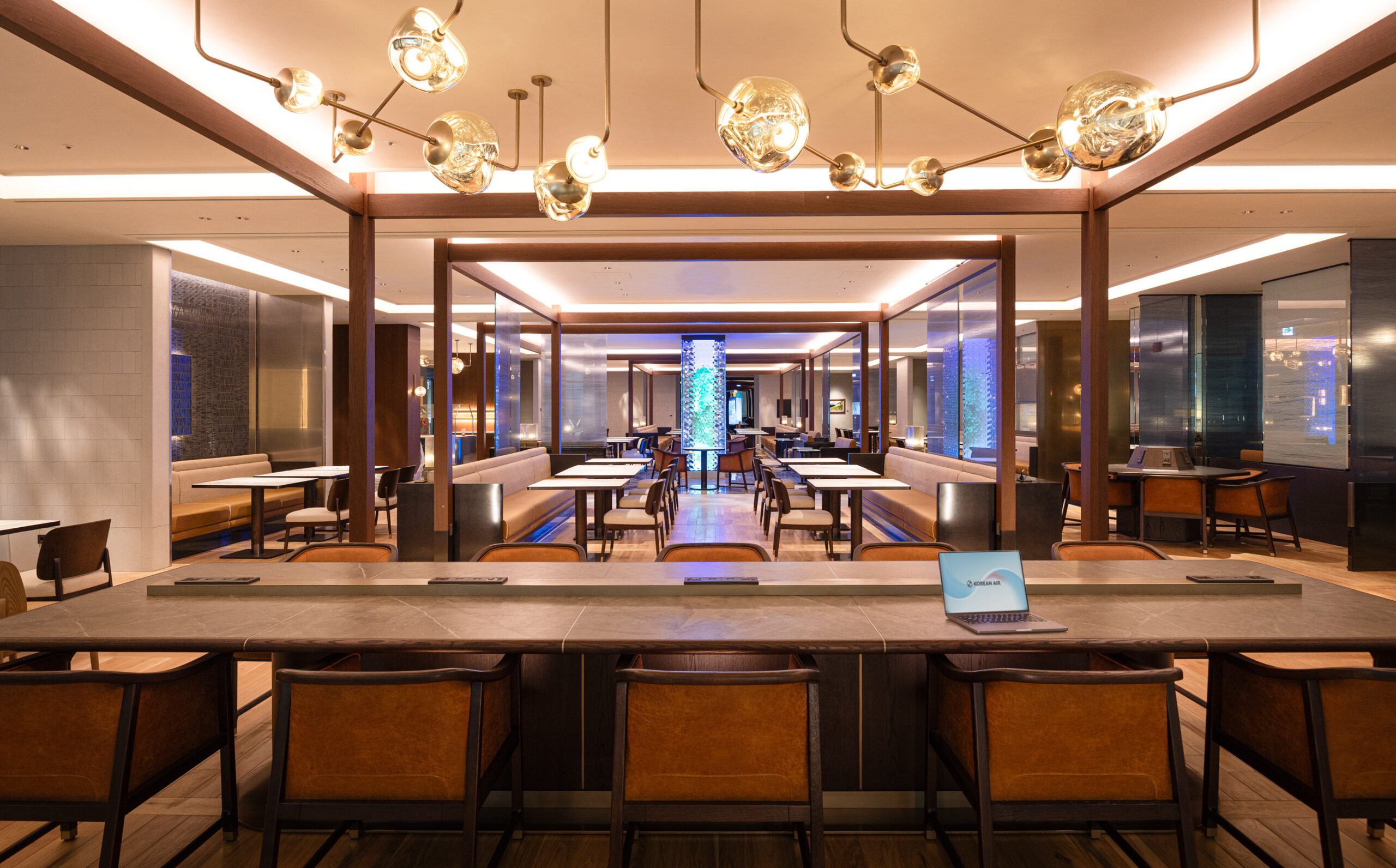 Neu im Angebot sind die Prestige Garden East Lounge und Prestige Garden West Lounge. Beide setzen auf eine reduzierte, moderne Gestaltung, bieten aber unterschiedliche Ausblicke: die Ost-Lounge auf einen traditionellen koreanischen Garten, die West-Lounge auf einen modernen Garten im westlichen Stil. Auch hier steht eine Auswahl an Speisen und Getränken bereit, jedoch in einem deutlich ruhigeren Ambiente als in den Hauptlounges.