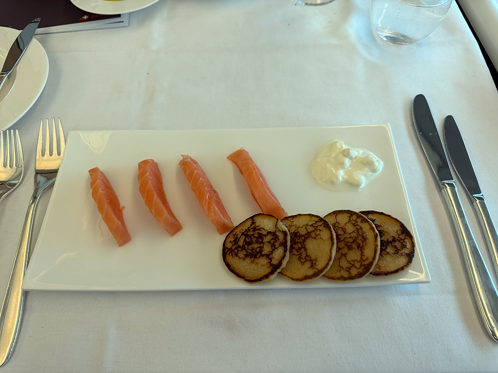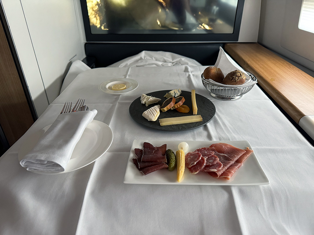 Da ich (anscheinend als einziger First Class Gast seit einiger Zeit) mein Essen vorbestellt hatte, bekam ich auch genau das Gericht, das ich mir ausgesucht hatte.