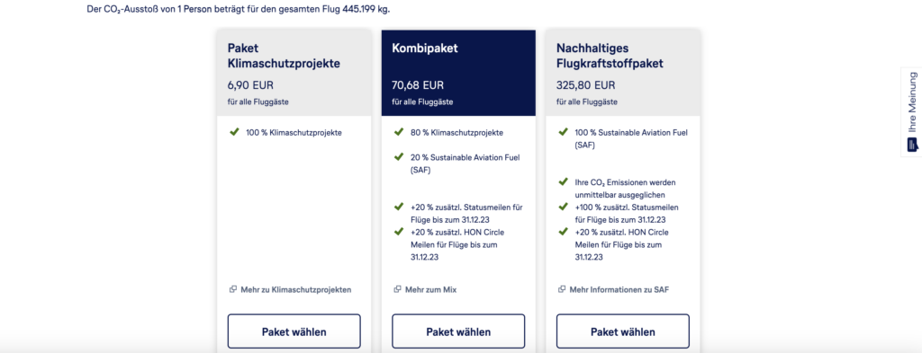 Mit 325 Euro sind die zusätzlichen Statusmeilen auch teuer erkauft, dafür gibt es das gute Gewissen kostenlos dazu.