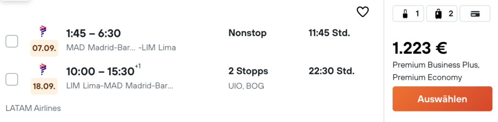 Flüge nach Südamerika können sehr teuer sein und auch wenn LATAM immer wieder günstige Angebote ab Madrid hat, diese Preise sind sicherlich nicht „normal“ und ein wirklich erwähnenswertes Angebot. Gerade Lima, was wirklich ein spannendes Reiseziel ist, könnte hier für den ein oder anderen in den Fokus rücken, getreu dem Motto: „Man reist dorthin, wo der Deal hin geht“.