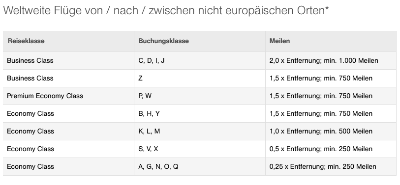 Auch die Fußnote, dass Flüge in die USA, Canada, Mexico und Puerto Rico vom Meilensammeln ausgeschlossen sind, finde ich etwas schade.