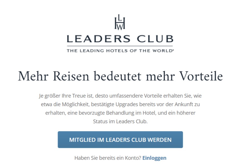 Der LHW Leaders Club ist eines der Kundenbindungsprogramme, bei dem Ihr wenig falsch machen könnt, wenn Ihr Euch dort anmeldet. Ganz im Gegenteil, Ihr macht viel falsch, wenn Ihr das nicht tut, denn ihr würdet mindestens ein kostenloses Frühstück verpassen, das hier bereits bei der niedrigsten Mitgliedsstufe enthalten ist. Schon für Euren zweiten Aufenthalt erwartet Euch ein jährliches kostenfreies Upgrade.