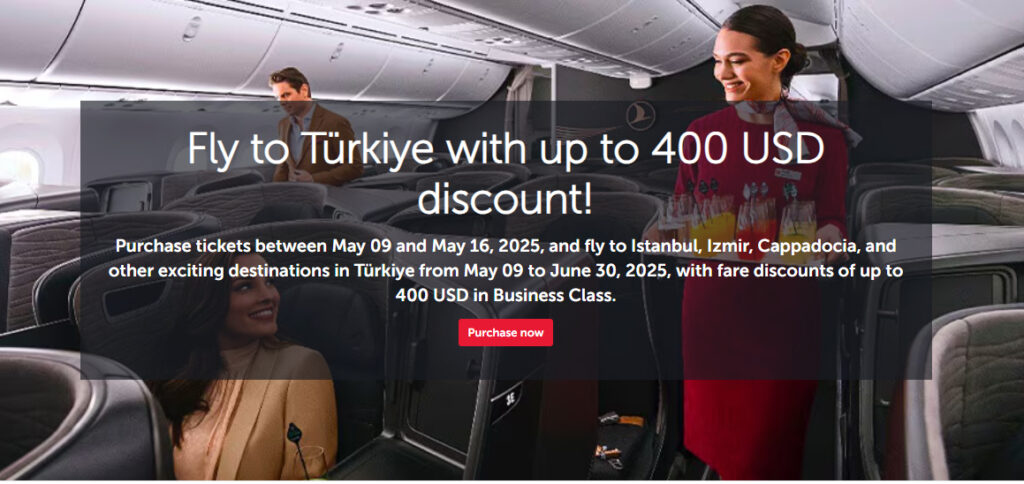 Tatsächlich läuft der „Fly to Türkiye with up to 400 USD discount“ schon seit dem 9. Mai 2025. Noch ist das Kontingent des Gutscheincode „TKFYD“ jedoch nicht ausgeschöpft und ihr könnt noch von der Aktion profitieren. Allerdings ist die Voraussetzung ein gemeinsam gebuchter Hin- und Rückflug bis zum 30. Juni 2025.