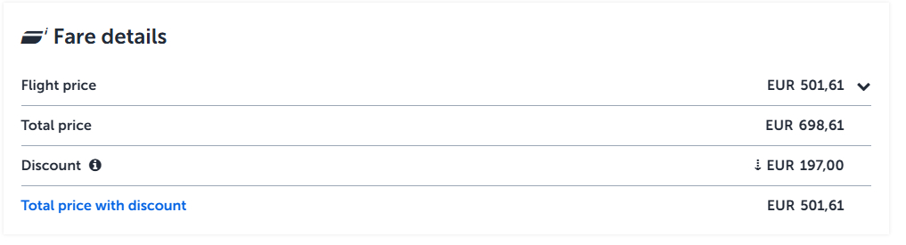 - Rabatt: Gilt nur auf Grundtarif, nicht auf Steuern.