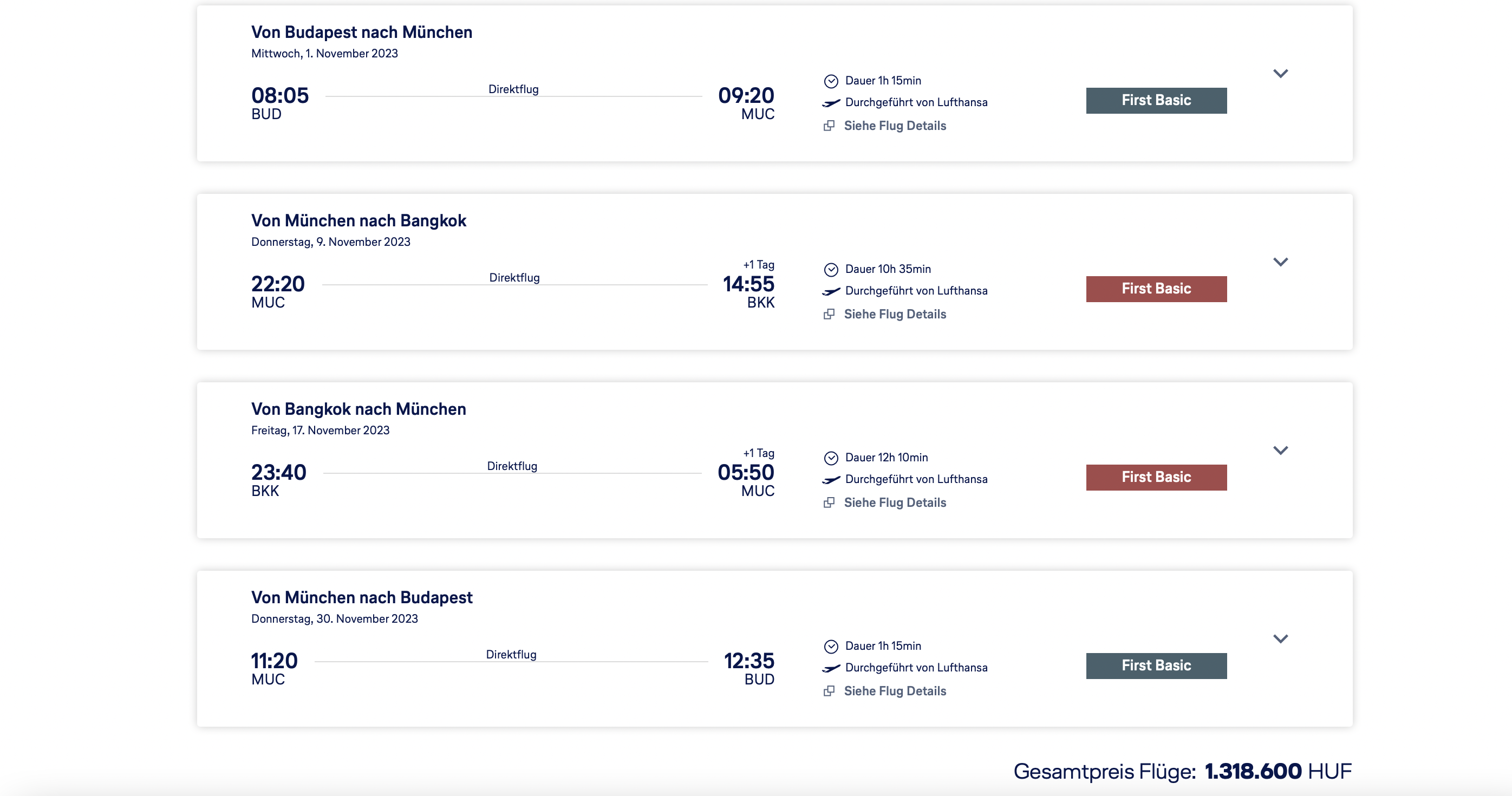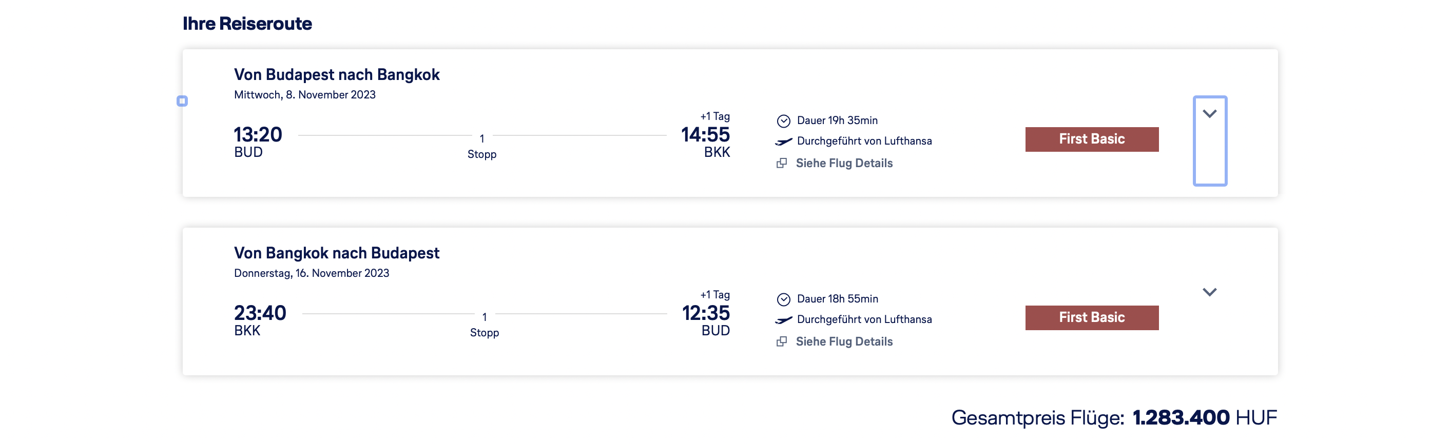 Mit 3.474 Euro pro Person für den Hin- und Rückflug sind diese Lufthansa First Class Tarife nach Bangkok nicht die günstigsten, welche wir je gesehen haben, aber aktuell ist es wohl eine der günstigsten Optionen, um in der Lufthansa First Class im Airbus A380 nach Bangkok zu reisen.