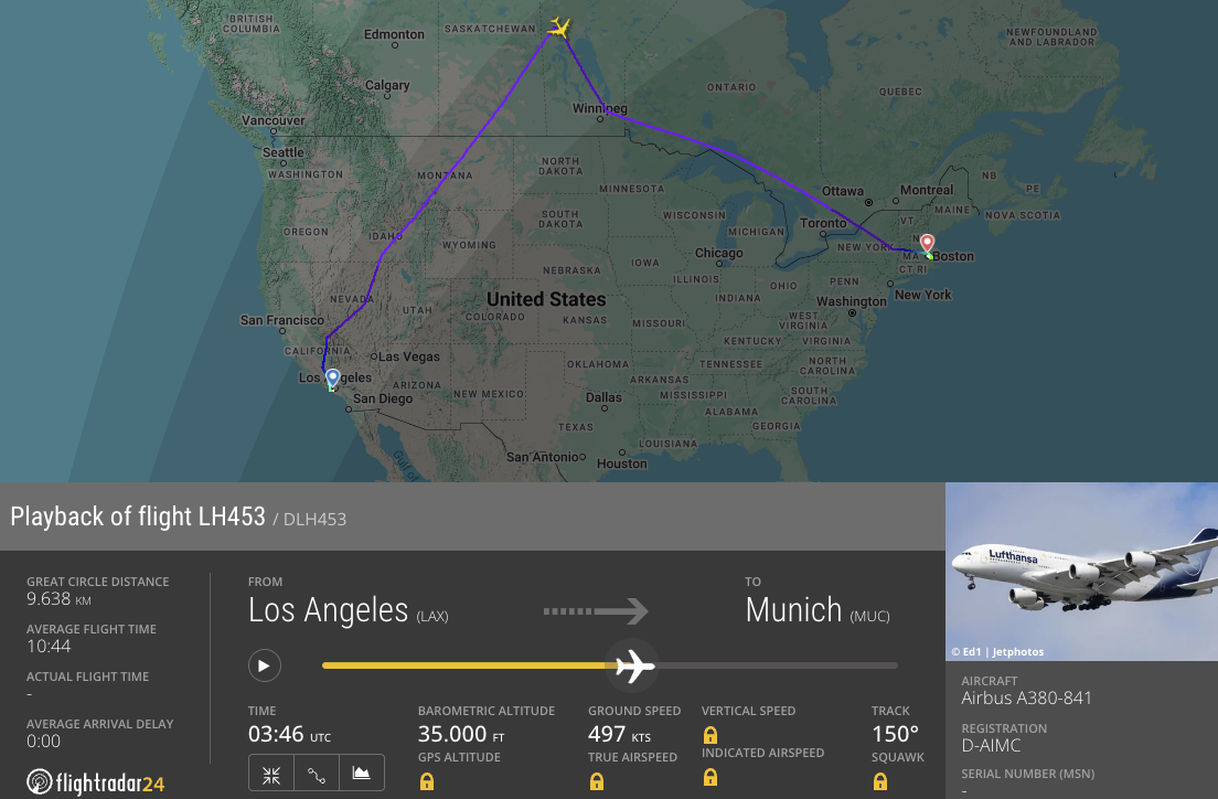 Auf dem Lufthansa-Flug LH453 von Los Angeles nach München kam es am 23. April 2025 zu einem Zwischenfall, der eine unplanmäßige Landung erforderlich machte. In dem Business-Class-Sitz eines Airbus A380 hatte ein Passagier sein iPad eingeklemmt. Das Tablett stellte ein potenzielles Sicherheitsrisiko dar, weshalb sich die Crew entschloss, den Flug zu unterbrechen. Der Superjumbo mit der Registrierung D-AIMC setzte zur Landung in Boston an.