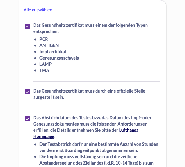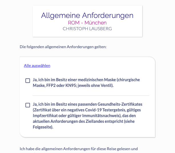 Wir konnten diese digitale Dokumentenprüfung auch schon auf Flügen nach Italien testen und haben hier vor allen Flügen online eine Bordkarte erhalten. Entscheidend ist allerdings, dass man auch die entsprechenden Dokumente wie Impfzertifikat oder einen Test von Centogene mit QR Code besitzt, damit das System die Tests überprüfen kann. Trotz Prüfung müssen diese Dokumente übrigens dennoch mitgeführt werden.