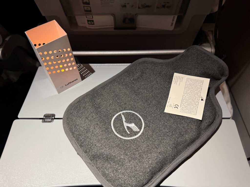 Ungläubig betrachtete ich die Lufthansa-gebrandete Wärmflasche und die elektrische Kerze, die mein Tischchen zierten. Ich habe mich riesig gefreut, aber verdächtigte auch Christoph, hier irgendetwas organisiert zu haben.
