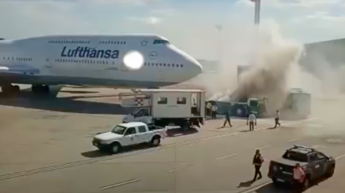 Beim Zurückschieben des Flugzeuges fing der Schlepper noch am Terminal Feuer und brannte direkt vor dem Flugzeug aus. Zum Glück konnte man den Schlepper noch vom Flugzeug entfernen und die Mannschaft am Boden hat diesen auch schnell gelöscht. Dennoch brannte das Fahrzeug fast komplett aus. Ein Video von dem Vorfall zeigt, wie nahe man am Terminal war und auch wie dicht der Schlepper an der Lufthansa Boeing 747-8 stand, als er brannte.