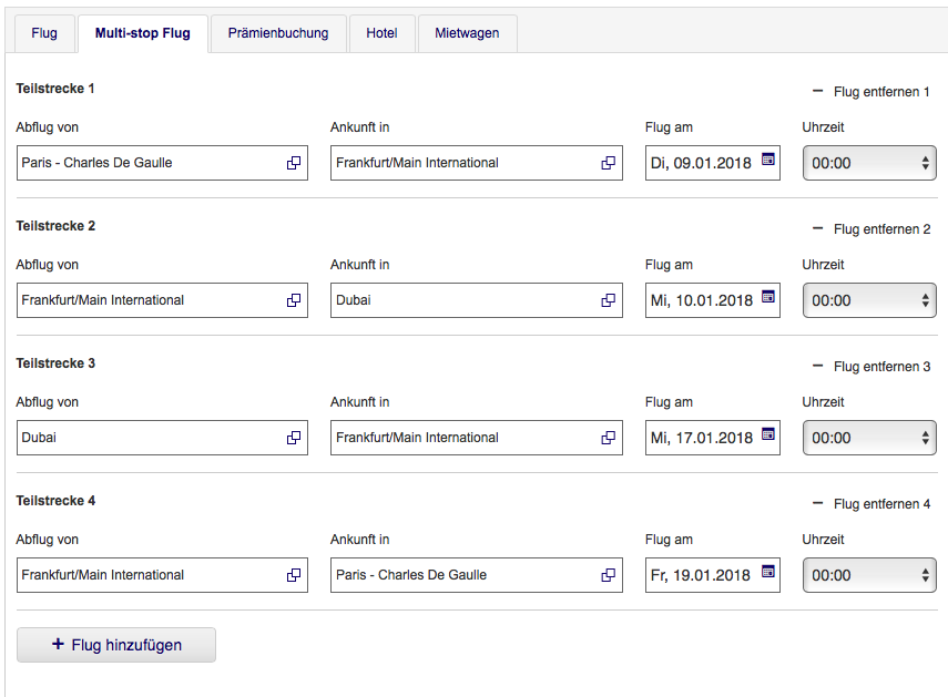 Hierfür müsst Ihr mit der Multisegment Suche auf Lufthansa.com die Flüge einzeln suchen und auswählen. Achtet darauf, dass Ihr maximal 24 Stunden in Frankfurt oder München bleiben dürft, da sonst der Flugpreis deutlich steigt.
