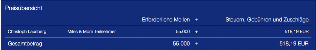Miles&More Prämienmeilen: 6.000 Meilen / Preis: 54 Euro