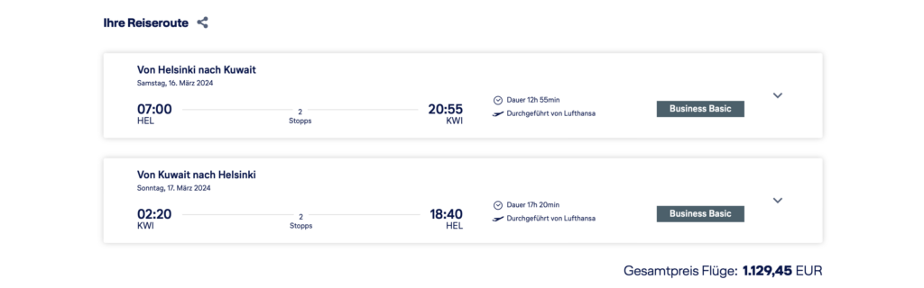 Dabei machen wir uns bei diesen Lufthansa Business Class Status Points Run die kürzesten Langstrecken von Lufthansa in den Nahen Osten zu nutze, welche aber nach dem neuen System in der Business Class genau so 200 Status Punkte bringen, wie ein Flug nach Argentinien. Passend dazu gibt es auch noch sehr günstige Angebote von Helsinki über Frankfurt (und ggf. München) nach Kuwait und Dammam.