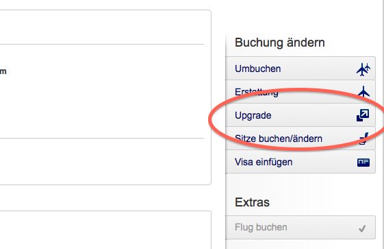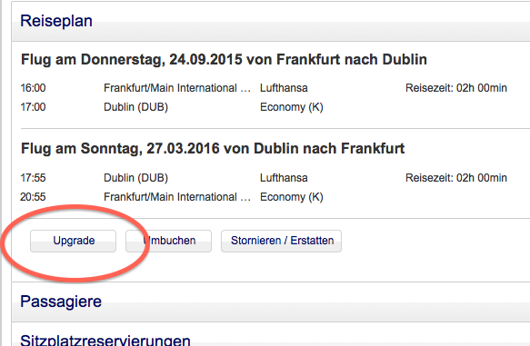 Der Upgrade Button ist entweder oben rechts oder unter der Flugübersicht zu finden.