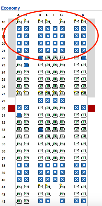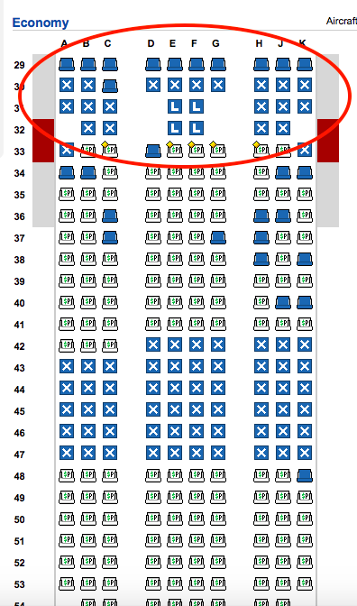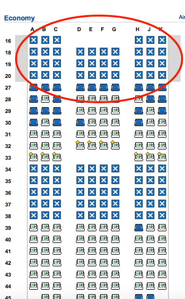 In den Sitzplänen unten habe ich die Sitzplätze in den bevorzugten Zonen markiert, welche ab dem 07.März für eine zusätzliche Gebühr reserviert werden können.