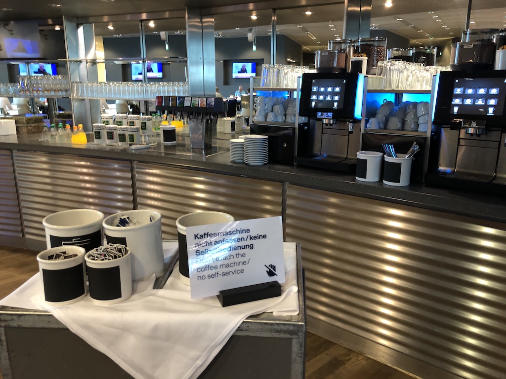 Seitdem waren gastronomische Betriebe geschlossen, für Lufthansa bedeutete dies den Verzicht auf Speisen und Getränke in den deutschen Einrichtungen. Allerdings sind Essen und Getränke – wie bei Restaurants auch – als Take Away gestattet. Daher gab es bisher ein begrenztes Angebot wie Sandwiches, Wasser & Kaffee beim Verlassen der Räumlichkeit.