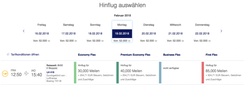 Das sind dann 1,2 Meilen je Euro bei den meisten Programmen.