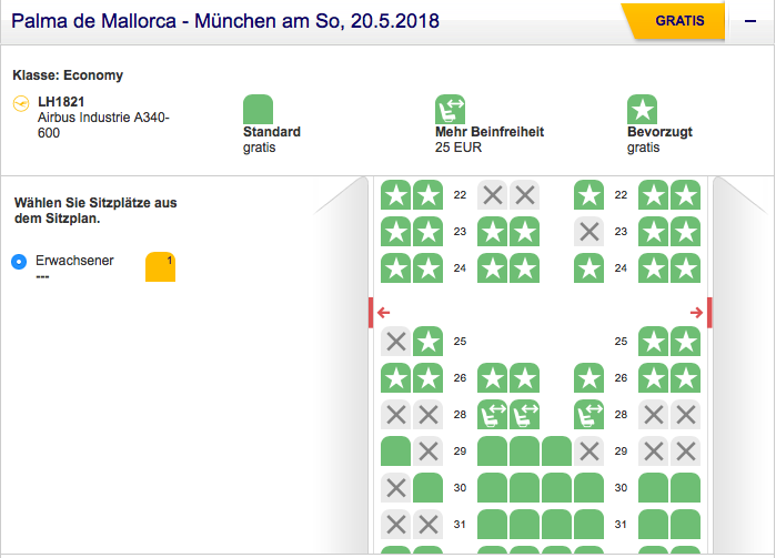 Leider können Passagier ohne entsprechenden Status, oder mit einem Star Alliance Gold Status, diese Sitze nicht vorab reservieren. Beim Einchecken am Flughafen oder in der Lounge, kann man mit nettem Nachfragen hier allerdings Erfolg haben.