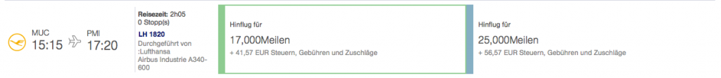 Die Meilenwerte liegen hierbei bei 25.000 Meilen in der Business Class und 17.000 Meilen in der Economy Class.