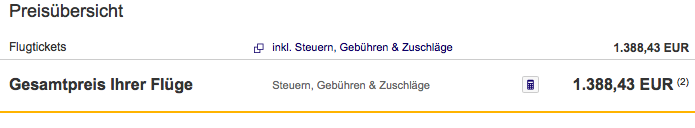 Gesamtkosten 100500 Meilen + € 1790 , und das für 2 Personen!!!